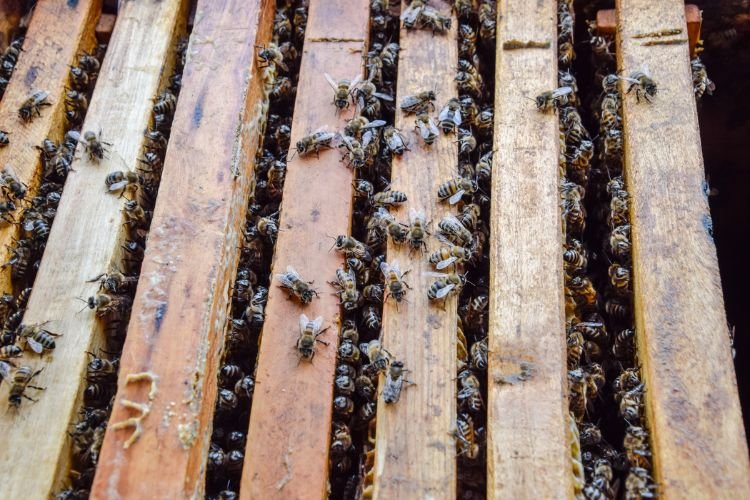 The hive contains three types of bees: queens, males, and female worker bees. Queens are responsible for laying eggs to sustain and grow the colony. Male bees’ sole purpose is to fertilize the queen; after mating, they die. Worker bees are sterile females that forage for nectar and bring it back to the hive, where they convert it into honey using a special gland.